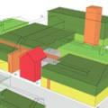 KITE’s design for this lounge is an example of how a windowless basement space can be transformed into an appealing and relaxing staff area for dining and collaborative interactions. Located in an existing educational building without opportunity for natural daylight, KITE proposes using light, color, and a custom wood ceiling structure to create an inviting setting.