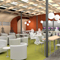 The most striking feature is the large central atrium which contains a lounge that is usable as a event space. Collaboration rooms and informal meeting rooms ring the open atrium on three floors, creating an active hub. The interiors are light and airy, and draw inspiration from structure used in industrial maritime buildings.