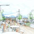 KITE prepared this design for the rooftop of an urban university building to take adavantage of magnificant city skyline views. The design used carefully arranged planters, seating areas, and shade structures to subtly divide the space and highlight key views. A covered outdoor structure would provide sheltered space. Larger planting areas integrated rainwater collection and were placed to amplify the indoor-outdoor connections.