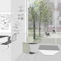 KITE conceived a proposal for a new campus academic building that employed strategic siting to take advantage of relationships to the existing campus. The design positioned the building on the corner of its urban site in order to define a small courtyard which would be the terminus of an active path. The building then used views onto this south-facing courtyard to set the stage for views of an existing historic building, and create a more gracious entrance to a tall mid-century modern building. A shady path along the north side of the building completed the pedestrian network, and provided opportunities to have quieter contemplative green space outside offices and seminar rooms. The balance of public and private in the way it defined this edge of campus as well as within the building grew from the key move of siting the building.